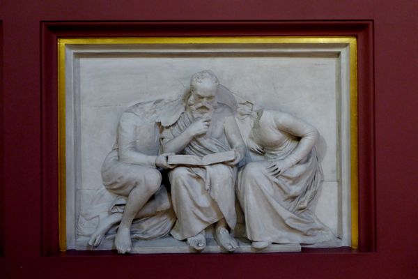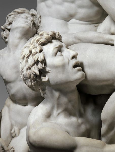 Curator: Ivan Meštrović’s *Fountain of Life*, created around 1905, is an arresting tableau of figures rendered in mixed media, predominantly in stone and bronze using relief and carving techniques. Editor: It is immediately striking—the figures appear trapped, almost crushed by the stone itself, conveying a palpable sense of anguish and collective suffering. The texture, so roughly hewn, amplifies this feeling. Curator: Indeed, observe how Meštrović employs the weight and density of the materials to underscore the emotional tenor of the work. The rough texture and unfinished quality enhance the raw, emotive power of the sculpture. It speaks to his use of Symbolism as a rejection of the traditional figure. Editor: The choice of Symbolism allows him to address the shared suffering of the Balkan region at that time. Looking at it now, I can’t help but consider it in the context of ongoing displacement and crises around the globe, emphasizing the human costs. This sculpture powerfully speaks to collective grief, representing universal experiences with specific cultural significance that highlight both its timeless relevance and localized impact. Curator: Precisely, and the figures are stylized just enough to transcend individual portraits, allowing viewers to project onto them, creating a more profound connection between art and audience. Editor: I’m struck by the positioning of the figures, as they create a hierarchy of pain and endurance, while the gaze that many figures seem to focus downwards, implying complicity in systems that facilitate social violence. Curator: Yes, Meštrović deliberately manipulates space, mass, and volume to generate this feeling of tension and confinement. Editor: Reflecting on this experience, the enduring appeal stems from Meštrović’s success in crafting such immediate emotional narratives. The form underscores that the subjects, trapped between life and loss, still stand. Curator: Agreed. Ultimately, the strength of *Fountain of Life* lies in its skillful juxtaposition of material presence with deep emotion, establishing an enduring aesthetic and thematic value.