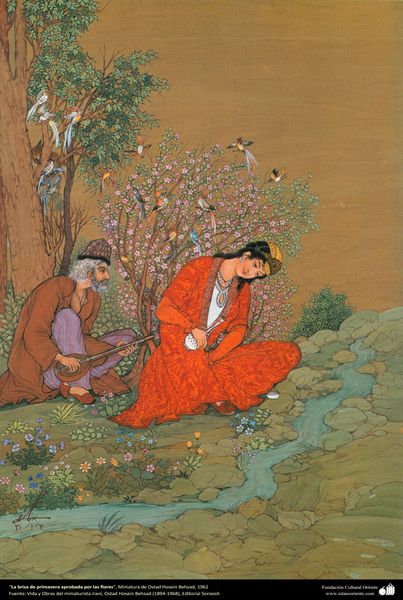This image, known as "The Lovers", was created by an anonymous artist. The miniature painting invites us to reflect on the place of erotic imagery within a specific cultural context. Made in Persia, its intimate portrayal of physical love may be unexpected, considering the region's religious traditions. Yet, in the world of courtly art, such scenes could serve various purposes, from simple decoration to complex metaphors for spiritual longing. The vibrant colors, the intricate patterns, and the stylized figures are visual codes that reflect the aesthetic values of Persian art. The absence of perspective, the flatness of the figures, and the emphasis on surface ornamentation all point to a cultural tradition that values symbolic representation over naturalistic depiction. To fully understand this painting, it would be beneficial to consult historical texts, religious treatises, and literary works that shed light on attitudes towards love, sexuality, and visual representation in Persian society. Art is never made in a vacuum; it always emerges from a specific social and institutional context.
