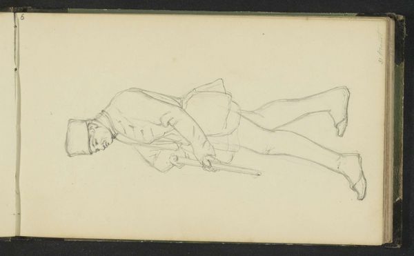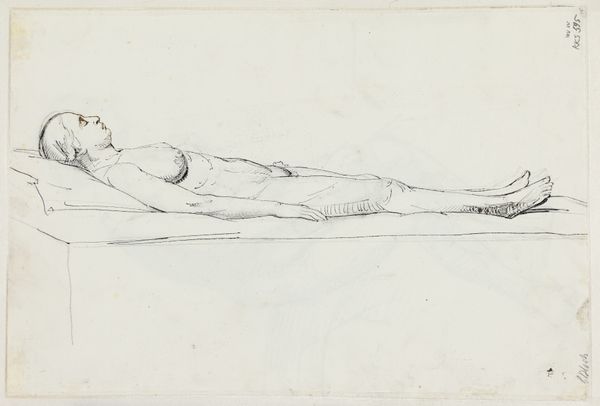 Editor: This is a pencil drawing by Niels Larsen Stevns, created around 1923-24. It's a study for his painting "Resurrection of Christ", depicting a fallen soldier. The sketch feels fragmented to me, like glimpses into the process of creation. What’s your take on it? Curator: I am fascinated by the raw materiality of this sketch. It isn’t the finished piece, of course; rather, it displays the artist’s labor and the way a figure comes together from raw materials. Do you notice the artist experimenting with various poses? This offers us a rare insight into Stevns’ working process. Editor: I do see how the artist uses line to define volume. Is it unusual to see a religious scene conveyed through this more practical, almost industrial-feeling approach? Curator: Precisely. Often, we consider drawings a lower artform than painting. This drawing, though, offers insight into art production, where religious fervor and spiritual ideas come directly from labor. Notice how the material nature of the pencil marks dictates the form and therefore the subject. Editor: That’s really interesting. So you’re saying the humbleness of the medium—the pencil and paper—actually enhances our understanding of the themes of resurrection? It grounds them somehow? Curator: Exactly. It's a study in materiality. It makes you consider where the sublime actually originates and whose hands brought it to the paper. It isn't divinely given, it’s hard work and choice. Editor: I’ve never thought about art in quite this way. Now I see how the choice of material impacts the final interpretation. Thanks! Curator: Indeed. Thinking about artistic processes in terms of production allows a critical view on art history and offers ways to deconstruct traditions, particularly surrounding high art.