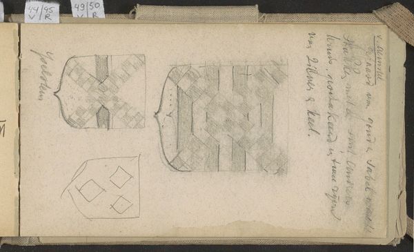 Reinier Willem Petrus de Vries created this book cover design for Alphonse Daudet’s “Les Femmes d’Artistes,” likely in the late 19th or early 20th century in the Netherlands. It's an intriguing object that reflects the social landscape of the time. The cover design, with its muted tones and stylized geometric patterns, speaks to the aesthetics of the Art Nouveau movement, which sought to integrate art into everyday life, including the design of books. The title, meaning "The Wives of Artists", hints at the cultural fascination - and perhaps anxieties - surrounding the role of women in artistic circles. This was a period when the art world was becoming more professionalized, with institutions like art academies and museums playing an increasingly important role. The design, in its very nature, engages with the commercial aspects of art, designed as it is to attract readers in a bookshop. Understanding this artwork involves delving into the history of book design, the social dynamics of the art world, and the cultural status of women during this period. We might look at periodicals, exhibition catalogues, and other printed matter from the time to gain a deeper understanding of its context and meaning.