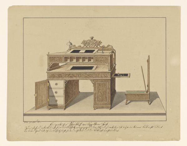 This drawing of a cabinet, or ‘kast met luik,’ was created by Elias Strasser, likely near the end of the 18th century. It’s rendered with simple lines, yet provides all the information a cabinetmaker would need to construct the piece. The drawing reveals the importance of skilled labor in the 18th century. Cabinetmaking was a highly specialized craft, involving the selection and preparation of wood, precise joinery, and often intricate carving or veneering. This division of labor, typical of pre-industrial production, meant that many hands and skills contributed to the final product. The design also incorporates precious materials like ebony or ivory for decorative inlays, reflecting the owner's status and wealth. Strasser’s drawing provides us with a valuable glimpse into the culture of production during this transitional era, where craft traditions were beginning to intersect with emerging industrial practices. It reminds us that even seemingly simple objects are the result of complex social and economic relationships.