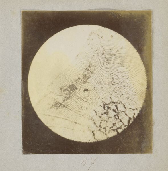 Curator: This is a gelatin-silver print entitled "Microscopic View of an Insect Wing, Enlarged Eighty Times," made between 1887 and 1888 by Marinus Pieter Filbri. Editor: My first thought is of fragility and exposure. The magnified insect wing feels incredibly delicate and almost vulnerable, laid bare under the lens. Curator: It's a fascinating look at how photography intersected with scientific inquiry during this period. The microscopic view transforms the familiar wing into an abstract landscape of textures and patterns. Think about what was not available before and what photography allowed in its time, revealing something usually not seen by the human eye. Editor: Absolutely, it challenges our understanding of scale and beauty. But beyond the scientific merit, I can't help but consider how the act of magnification and display potentially mirrors societal power dynamics, putting nature, in this case the tiny insect, under human scrutiny. Think about Victorian collecting mania. Curator: That's an intriguing point. But perhaps we can also appreciate the artist’s reverence for the intricate design inherent in nature. Throughout art history, insect wings symbolize freedom, the soul, even resurrection. The wings’ ethereal nature adds to its appeal. Editor: Yes, and while the imagery itself is captivating, the social context is crucial to consider. During the late 19th century, there were evolving scientific advancements, combined with a colonial impulse to categorize and control the natural world. This artwork might, unintentionally or otherwise, reinforce those hierarchies. What was its intended audience and use? Curator: I agree, looking through a contemporary lens reveals complex layers. This photograph encourages both a deeper appreciation of nature's detail and a critical examination of the societal forces at play when science, art, and power converge. Editor: Indeed. By dissecting these visual symbols, we engage in important cultural discussions. Art can truly be an archive of complex history, if we choose to consider the forces at play at the time of the piece's creation and its meaning today.
