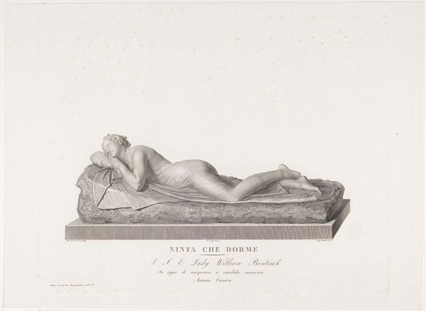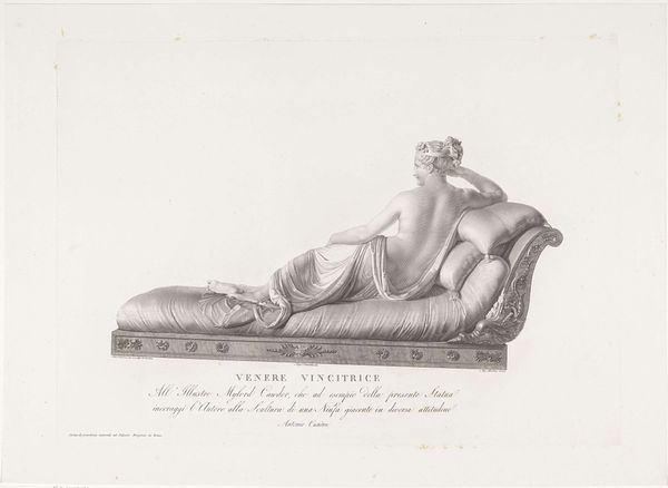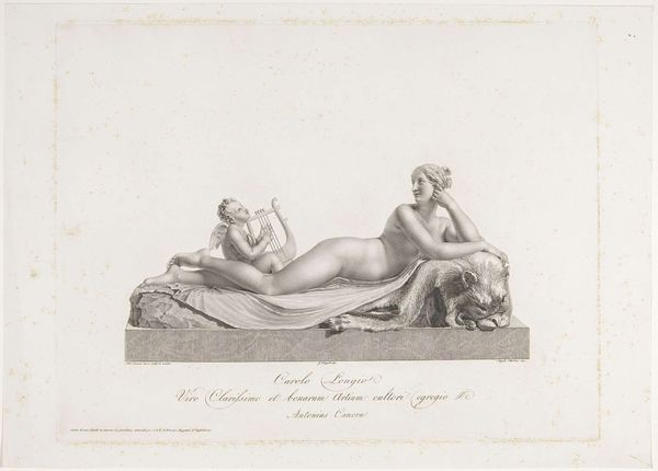 This print, made by Domenico Marchetti, reproduces a sculpture by Antonio Canova. It appeared in a publication intended to disseminate Canova's Neoclassical works. Prints like this played a key role in shaping taste and artistic reputation. They were a vital form of visual communication in the 18th and 19th centuries, allowing artworks to circulate widely. This was before photography became common. Note the idealized forms, smooth surfaces, and emphasis on classical subjects – hallmarks of Neoclassical art, which dominated European art institutions at the time. This artistic movement looked back to ancient Greece and Rome for inspiration, aligning itself with ideas of reason, order, and civic virtue. To truly understand this image, we might research the patronage system, the role of academies, and the broader cultural aspirations of the period. Art history shows us that the meaning of an artwork is never fixed, but always shaped by its social and institutional context.