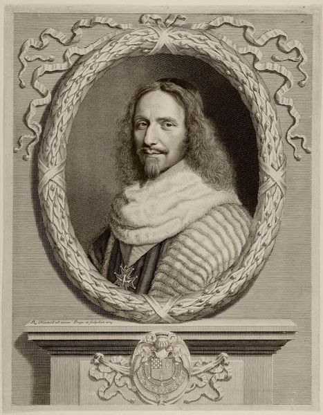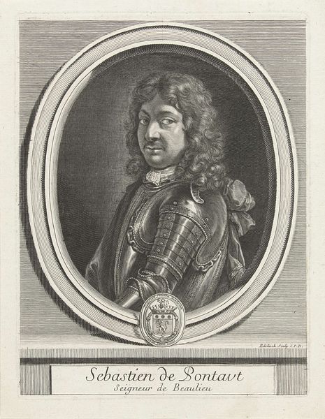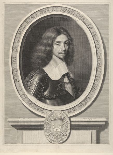 Editor: Here we have Robert Nanteuil’s portrait of "The Marshall of Turenne". It’s a print, quite detailed, and it has such a formal and imposing feel. What can you tell me about its historical context? Curator: Nanteuil created this portrait to circulate an image of power. Consider the print's role in disseminating Turenne's image throughout 17th-century France. How might this portrait have functioned as a form of political propaganda? Editor: So, it's not just a likeness, but a carefully constructed message about authority? Curator: Precisely! Think about who would have commissioned, collected, and viewed such a print. What social circles were being addressed? Editor: That's fascinating. I never considered how a print could be such a powerful tool for shaping public perception. Curator: Exactly! It encourages us to think about the politics of image-making and its impact on historical figures' legacies.