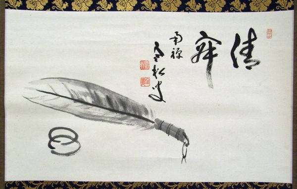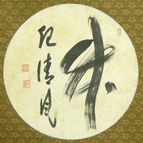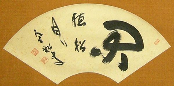 Editor: So here we have 'Grasp Moon Scoop Wind' by Zenkei Shibayama, an ink and watercolour drawing on paper. I'm struck by how immediate the brushstrokes feel; there’s an almost performative quality to it. What can you tell me about the context of this work? Curator: Considering a materialist approach, it’s crucial to think about the ink, paper, and brushstrokes – the very process of creation. This work appears to challenge the traditional hierarchy placing painting above calligraphy, or ‘high art’ above skilled craft. Editor: How so? Curator: Look at the directness and simplicity of the materials. The ink isn't trying to create illusions or mimic reality. Instead, its quality and the mark-making itself become the focal point. Furthermore, think about who would be consuming this artwork and where? Was it meant for display, contemplation or sale? The materials would influence both the context of creation, labor and its reception by a specific audience. Editor: That’s a very different perspective from what I expected. It focuses on how and why this work came to be more than what it "means". Curator: Exactly. Understanding the limitations and possibilities of ink, watercolours and paper and labor inform the intentionality of the calligrapher, and how a work made with these materials circulates within a network of production and exchange is more important than some abstract notion of beauty or inherent value. Do you think that the meaning is in its production? Editor: Yes! Thinking about the materials shifts my focus from just admiring the aesthetic to appreciating the labor and the intentional choice of those materials. Thanks! Curator: Likewise, your initial reaction led me to rethink some of my own preconceptions about reception of materials!