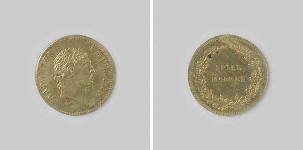 Editor: Here we have a commemorative medal from 1815 celebrating William Frederick George Louis, the Prince of Orange's role in the Battle of Waterloo. It’s a small, circular print made using metal relief and engraving. The classical style depiction of the Prince on horseback reminds me of ancient Roman coins. What catches your eye? Curator: The fascinating element to me is the transformation of the raw materials—the metals themselves—into objects of propaganda and commemoration. Think of the labor involved in mining, smelting, and then meticulously engraving this image. Who were the hands involved, and how did their own social positions influence the object’s creation? Editor: That's interesting. I was focusing on the Prince as a historical figure, but the process of creation gives a different perspective. Curator: Precisely! How does turning this brutal battle into a neatly produced object obscure the real cost of war? Consider how the medium – a coin-like object designed for mass production – helped disseminate a very particular narrative of the battle and the Prince's role within it. This seemingly simple object becomes a powerful tool for shaping public memory and national identity. What purpose was intended for this memento, who handled it, and who would be denied its representation? Editor: I see what you mean. It's a tangible object meant to carry and solidify a specific, potentially biased, account of history to an elite consumer. Curator: Exactly. By examining its production and circulation, we reveal how power operates not just through grand pronouncements, but through the everyday materials and objects that surround us. Even in commemorating this moment. Editor: So, thinking about its creation and materials unveils a more complex and critical understanding than just seeing it as a portrait of a war hero. Thanks for the new perspective. Curator: My pleasure. Remembering the tangible can add surprising depth.