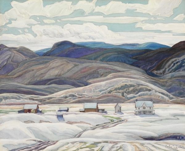 Rockwell Kent made this painting called, *Dead Calm North Greenland,* probably with oils, and from his imagination. Look at the way Kent layers color, building up these calm, horizontal bands of cloud and mountain to create a sense of depth. It's a process of accumulation, where each layer informs the next. There is a stillness to this piece; the water is like glass. The solitary figure in the kayak is dwarfed by the landscape but centered in the frame. Kent uses smooth brushstrokes and muted colors to evoke a sense of serenity and quiet contemplation. The deep blues and purples of the mountains reflect in the water, creating a mirror image that doubles the impact of the landscape. I'm reminded of the Hudson River School painters, like Frederic Church, but Kent's work has a more modern sensibility. Both shared a fascination with the sublime power of nature, but Kent brings a starker, more simplified vision to the canvas.