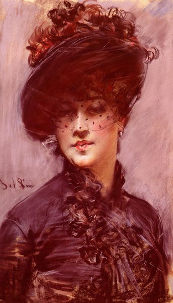 Jean-Louis Forain rendered this portrait of Madame Henri de Régnier with charcoal and crayon, creating a delicate study in light and shadow. The composition is dominated by the subject’s face, framed by a mass of dark, softly rendered hair. Forain’s handling of light is particularly striking; it gently models her features, casting subtle shadows that give depth and expression. The lines are soft, almost impressionistic, focusing on capturing the likeness and mood rather than precise detail. The contrast between the detailed face and the loosely defined hair and clothing draws the viewer’s eye. The use of chiaroscuro, combined with the sketch-like quality, evokes a sense of immediacy and intimacy, inviting us to contemplate the sitter’s inner life. This aesthetic invites us to consider how Forain uses form and technique to express emotion and convey meaning. Art, like language, employs symbols and codes that reflect social values and aesthetic ideals, offering insight into both the sitter and the artist’s world.