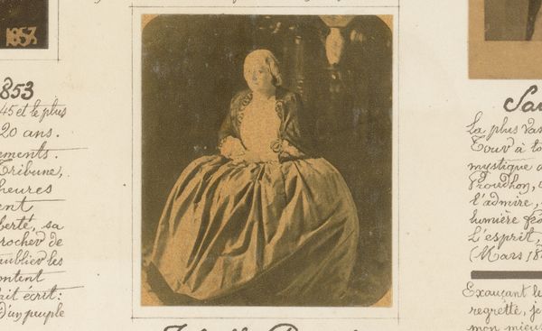 This is a reproduction of Antoine Watteau's "La Finette," housed in the Louvre, its maker currently unknown. The palette is muted, tending towards greens and greys, typical of Watteau's era but applied with a freedom that suggests the hand of someone really engaging with the process. The surface has a photographic quality, which obscures our view of the hand but there is a depth of tone suggesting layers of translucent washes. Look closely at the folds of the sitter's dress; the artist uses the play of light and shadow to give the fabric a shimmering, almost liquid quality. The overall effect is both ethereal and grounded, capturing the sitter's fleeting presence. There's a connection here to 19th-century photographers like Julia Margaret Cameron, who also aimed to capture something beyond mere likeness, a sense of inner life. Art is always a conversation, isn't it? It’s more about the questions than any easy answers.