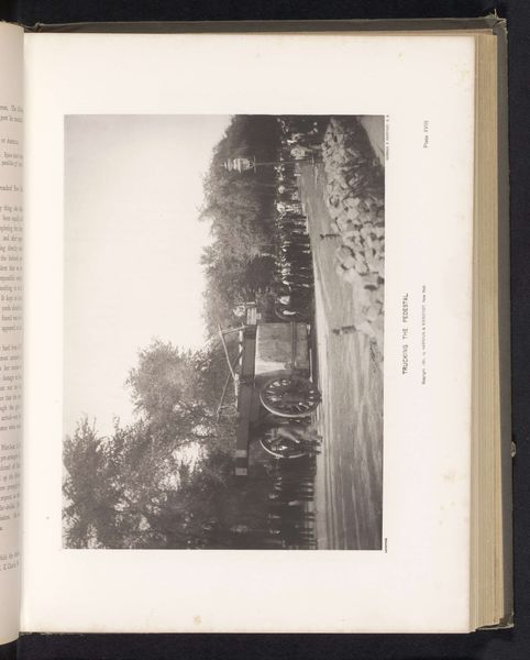 Editor: So, here we have a gelatin-silver print, a photograph titled "Opbreken van een kamp," taken by Frederick Saint John Gore before 1895. It seems to capture a very transient moment…the hustle and bustle of a camp being packed up. What stands out to you when you look at this? Curator: You know, I’m immediately drawn to the implied narrative. It’s more than just a snapshot of a place; it’s a moment brimming with human activity, a collective endeavor just before dispersal. I sense the quiet anxiety inherent to transitional spaces and the temporality of 'home.' Look closely; how does Gore use light and shadow to amplify the scene's emotion, do you think? Editor: I see what you mean, there is almost a sense of impending…something. The light is very flat and even which makes everything feel close and immediate. Do you think the flat lighting contributes to this temporality, this idea of an “in-between” moment? Curator: Absolutely! The starkness pushes all of this temporality to the front of the work.. Photography in this period was so often posed, and controlled – think portraits in studios. Gore lets something unplanned into the image, a refreshing slice of life captured and frozen, not composed. It allows us to think about time passing in such a still, silent space! Editor: It’s really incredible to think about that difference in approach. I initially only saw the physical action, but you've helped me see so much about temporality and intentionality here, which complicates my initial take. Curator: Exactly! I believe, perhaps naively, that every artwork hides secrets, each layer peeling back more context and story for anyone with patience and curiosity. A good eye, as yours develops, sees beyond subject. Editor: Thanks! Well, now I can’t wait to peel back some more.