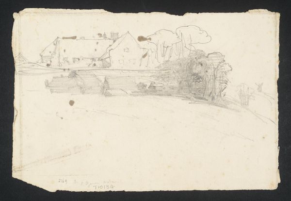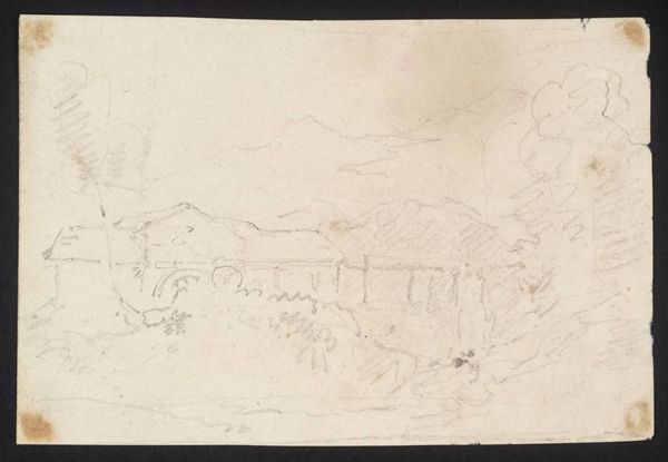 This is an undated graphite sketch entitled 'Landschap met bebouwing’ or ‘Landscape with Buildings’ by Willem (II) Troost. It is currently held in the Rijksmuseum. Troost lived during the 19th century, when Europe was undergoing immense political and social upheaval, from the fall of Napoleon to the rise of industrialization. In the Netherlands, this period saw a renewed interest in national identity and landscape painting. Troost, as a product of his time, engaged with these themes. The sketch itself is simple, a quick capturing of buildings nestled within a landscape. The delicate lines and unfinished quality give it an intimate, personal feel, inviting us into the artist's own experience of the place. Consider the act of sketching itself, the artist pausing to observe and record their surroundings. What does it mean to document a landscape, to claim it through art? The very act is a mediation of space. How does the artist's identity, their background and perspective, shape what they choose to depict and how they depict it?