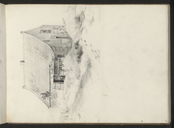 Curator: Samuel Prout's "Corfe Castle," presents us with an architectural study in ink and wash. Editor: The somber monochrome palette and crumbling stonework evokes a feeling of melancholy. Curator: Precisely, Prout's compositional choices—the dramatic foreground ruins contrasted with the village in the distance—create a sense of layered depth and spatial complexity. Editor: It's intriguing how he uses delicate washes to model the ruins. Think of the quarry workers and masons who crafted and shaped each block of stone. Their labor is embedded in these decaying forms. Curator: But isn't it more about the interplay of light and shadow, the tonal values creating atmospheric perspective? Prout masterfully captures the monumentality. Editor: Perhaps. But I can't ignore the human element and the lost hands that raised these walls. Curator: A fair point. The artwork transcends mere aesthetic beauty. Editor: Absolutely, I see the marks of history.