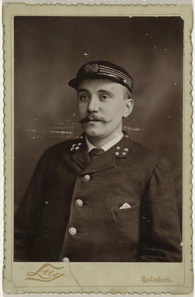 Curator: Immediately I’m drawn to the light, almost aggressively highlighting the subject’s face, against a muted background. It has this haunted yet noble air. Editor: Yes, that’s a very striking, characterful description! We are currently looking at “Karel Doorman”, a gelatin-silver print photograph from 1945 attributed to Anefo, here at the Rijksmuseum. What catches your eye about its materiality, that old photo paper quality, and its construction as an artifact? Curator: Ah, see, that explains the feeling I get – it feels of its time, you know? There’s a certain starkness, not just in the shades but in the subject's unyielding stare, almost a feeling of bearing witness to history. What strikes me more is the sheer volume of detail and care invested in what most would now see as mass produced portraiture. Editor: Absolutely, I agree. Note the heavy ornamentation on Doorman's uniform—consider the cost of those materials and labor relative to the time. How does the work communicate the politics of status and sacrifice? I suppose it's also a question of how labor, materiality and access converge to both memorialize him and further a nationalist narrative during reconstruction. Curator: Definitely. It brings up the tension, doesn't it, between celebrating a hero and acknowledging the huge losses of war? Doorman almost looks like a figure from a Greek tragedy; I can’t help but consider that he sacrificed everything. It speaks to something larger than just this photograph. Editor: Indeed. Looking at this photograph and considering the materials involved prompts thinking about value, access, and also remembrance. And thinking through those qualities is what, in the end, allows us to understand something about ourselves and also about the world from which these items have originated. Curator: In all honesty, looking closer helps us really start seeing these photographic fragments and historical artworks from new vantage points – that means a great deal to me! I am not sure when I will be thinking so hard about heroism or sacrifice next!
