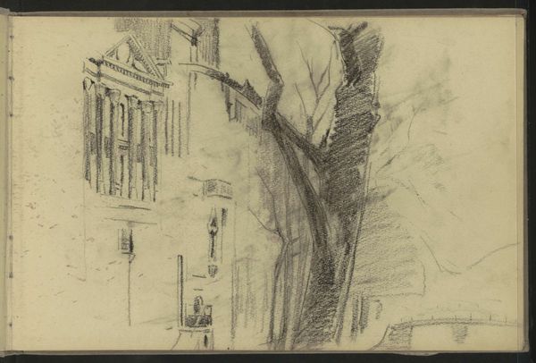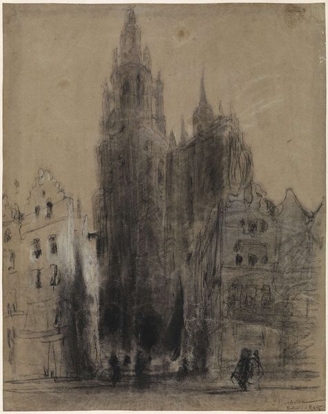 Curator: This is William Callow's sketch, titled "Frankfurt," held here at the Tate. Editor: It feels like a memory, a ghostly impression of a city street fading into time. Curator: Callow, born in 1812, was quite fond of architectural subjects and landscapes; this particular sketch uses graphite on paper. Editor: The composition is striking. The buildings loom, almost pressing in on the viewer, and yet the light suggests a certain openness. What strikes me most is the linear perspective directing the gaze right to the back. Curator: Indeed, he masterfully uses line to create depth, inviting the viewer into the heart of Frankfurt, but I also think about it as an emotional space, not just a physical location. Editor: A fleeting moment, captured with such delicate precision. It makes me wonder what else Callow witnessed in that city. Curator: A beautiful reminder that even sketches can hold a powerful presence.