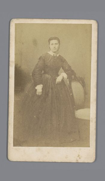 Editor: This is "Portret van twee onbekende vrouwen in Zeeuwse dracht" by E. Helder, a photograph taken sometime between 1895 and 1920. The women’s traditional Zeeland attire is striking, it looks like a painting, it feels posed and staged. What historical context am I missing here? Curator: Indeed, the pictorialist style adopted here, prevalent at the turn of the century, sought to elevate photography to the status of fine art. Given that this photograph is labeled genre-painting, and Helder has chosen this specific topic, what can we say about the rise of popular interest in folklore, tradition, and national identity? Editor: I see what you mean, I did wonder why it feels so performative, almost as if they were costumes. It must have resonated with contemporary sentiments surrounding nationalism. Was there anything about Zeeuwse culture in particular? Curator: Precisely. Consider the social function of imagery during periods of rapid urbanization and industrialization. This photo is interesting if we analyze it as both documentary evidence of traditional attire and a construction of an idealized past, reflecting on anxieties about modernity. Why preserve these garments, these moments? How is it seen by its original audience versus how we receive the artwork now? Editor: It is like a visual preservation. I never would have thought that a picture could reflect these sociopolitical forces and project particular national identity values. Curator: It illustrates the intricate ways art and cultural values can shape society. Editor: Thank you! Now I'm seeing the artwork and how its narrative fits into cultural understanding. Curator: And I'm intrigued by how it shifts through time. Always more to learn!