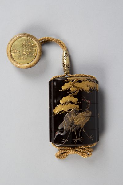 This Inrō was made by an artist from the Somada School. These artists were known for using materials like gold lacquer, inlaid with shell and metal. This particular Inrō is an exquisite example of craftsmanship, with a frame intricately decorated with geometric patterns. The main image is made up of a depiction of Jurōjin, the God of Longevity, with a stag on one side, and a long-tailed turtle under bamboo on the other. The work is made through precise and complex techniques of layering and joining. Notice how the artist uses shell and metal to emphasize texture, weight, and the play of light, as well as the smooth surface of the lacquer. The process of making an object like this would involve a division of labor, with different artisans responsible for preparing the materials and executing the various stages of the design. By looking closely at objects like this, we gain a deeper appreciation of the history of making, and the ways in which craft and design are deeply intertwined with broader social and economic forces.