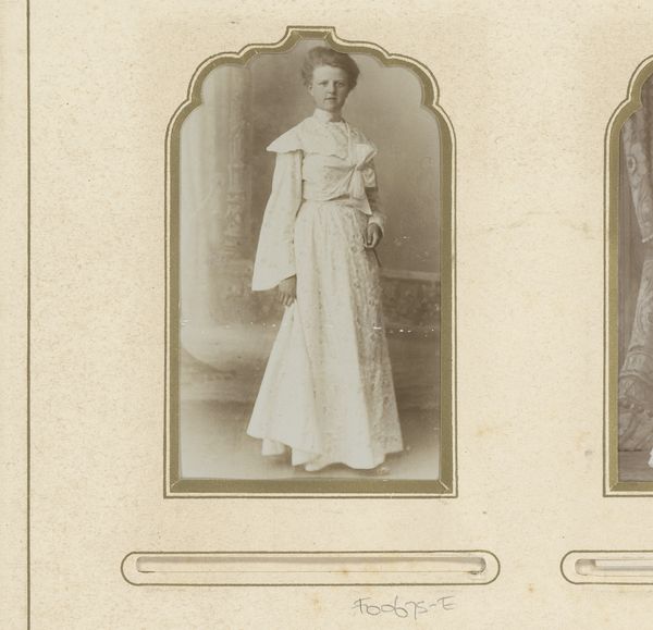 This photograph of a standing maid in a white hat, bow tie, and apron by E. v.d. Kerkhoff shows an eye for capturing the details of ordinary life. The limited palette focuses our attention on the textures and shapes of the subject. Looking at the maid’s uniform, I notice how the folds in her apron contrast with the smooth surface of her dark jacket, and this contrast gives a tactile feel to the image. The surface is simple, almost unassuming, but it captures the light in such a way that the image feels both immediate and intimate. The way she leans on the chair, almost as if she were posing, makes me think of Degas. The framing gives a glimpse into another time and place, but its open-endedness invites the viewer to bring their own perspective. Like a half-finished story, it captures a fleeting moment.