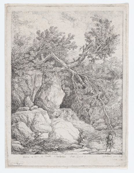 Curator: Victor Müller created this delicate pencil drawing, "Edge of a Wood," currently held in the Städel Museum's collection. Editor: My initial impression is one of hushed stillness. It’s more than just a landscape; there’s a presence here, almost a spirit, captured with such precision. The intricate details feel reverential. Curator: It’s intriguing how he uses just pencil and paper to create this almost tangible texture of leaves and bark. The density of the lines suggests a palpable, shady coolness. Editor: I’m also struck by the romantic undertones, don't you think? Forests have long served as metaphors for the subconscious, spaces where social norms are suspended. This feels like a return to something primal. The drawing’s edge acts as both an opening into and a containment of that natural state. The wood presents a quiet space. Curator: Definitely a portal of sorts. I’m curious, though, about the sociopolitical reading here. Do you see Müller consciously engaging with those forest mythologies, or is it more about his immediate, sensory experience? Editor: I would suggest that the artist is indeed conscious of the historical context of the wood as an imagined territory, particularly with respect to the intersection of ecology and industrial encroachment. This "edge," visually represented, symbolizes both division and potential access. The location itself has a meaning! Curator: You’ve certainly given me another avenue to consider; I can get very caught up in the lines and tonal shifts! This feels deeply felt, but in an introverted way, less demonstrative, almost shy. Do you sense any specific intentionality about the style? Editor: Realism can be deceptive. It seems "objective," but representation is always a construct. There are very few women visible within landscapes, but a feminine spirit can also be a silent rebellion, reclaiming an organic sense of space away from masculine urbanisation. What looks like nature in an artwork can also carry significant layers of cultural politics. Curator: That certainly shifts my perspective. Seeing his world with renewed curiosity now, all these potential entry points where art reflects not just the beauty, but also the unspoken tensions within an environment. Editor: Exactly! A reminder that every line, every carefully shaded leaf, carries history, intention, and possibility. A forest not just seen, but consciously considered.