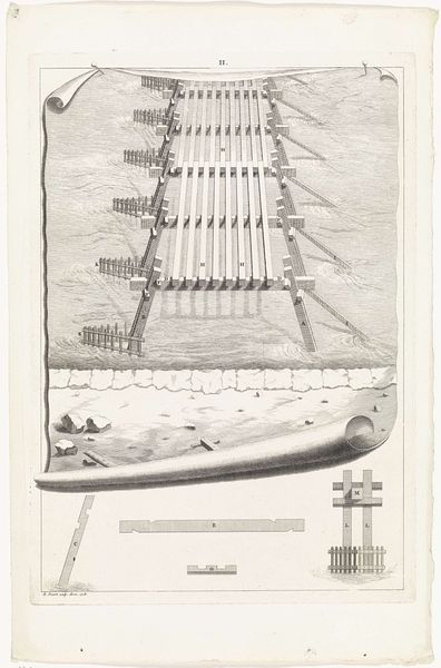 This detailed plan of a section of the sea dike east of Muiden, was created around 1702 by an anonymous artist. It offers us a glimpse into the landscape and infrastructure challenges faced by the Dutch Republic. The Zeedijk, or sea dike, was more than just a physical barrier against the water. It was a symbol of Dutch identity, and a testament to the collective efforts of its people to control their environment. The image reveals not only the engineering of the dike, but also the human element in its maintenance; the lone figure in a small boat reminds us of the labor involved. Living in harmony with water has defined much of the Dutch experience, shaping its culture, economy, and social structures. The artist of this plattegrond captured a moment in that ongoing negotiation between land and sea, reminding us of the constant vigilance required to maintain this delicate balance.