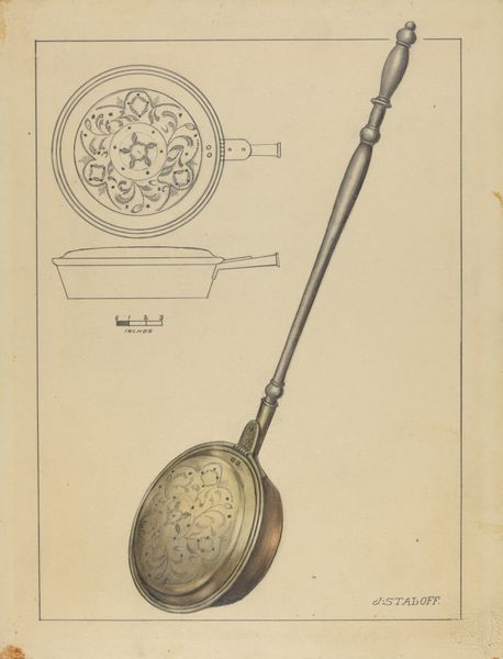 Jack Staloff made 'Warmer' sometime in the 20th century, using graphite and colored pencil on paper. It's all about lines, isn’t it? So precise, almost technical, but still with this tenderness. Look at how he's built up the form of the warmer itself. The density of the graphite, the way it catches the light – it's not just about depicting an object, it's about feeling its weight, its presence. See those paler lines that give the impression of a lid? Almost like a memory of the thing, or a possibility. It reminds me of my own process, layering and excavating, trying to find the essence of a form through repetition and erasure. Staloff reminds me of artists like Agnes Martin, who also used simple forms and repetition to create something deeply moving and meditative. It’s this quiet insistence, this dedication to the act of seeing and recording, that makes the work so special. It’s not just a drawing; it’s a way of thinking.