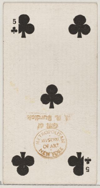 This is "Nine Clubs (black)," a playing card produced for Duke brand cigarettes around the turn of the twentieth century in the United States. This card, like others in the series, offers us a glimpse into the cultural landscape of the time. Tobacco companies often included collectible cards in their packaging as a marketing strategy, and these cards reflected popular interests and social values. The imagery found on them often reinforced prevailing social norms. This card is a fairly standard design, but the brand it represents speaks volumes about the rise of consumer culture and the strategies used to capture public attention. The card itself has become a collectable artefact, eventually finding its way into the collection of the Metropolitan Museum. Understanding this artwork involves delving into the history of advertising, consumerism, and popular culture of the period. Trade catalogs, company records, and historical accounts of the tobacco industry can shed light on the social and economic context in which this card was created. By examining these sources, we can gain a deeper appreciation for the ways in which art and commerce intersected in shaping American society at the beginning of the twentieth century.