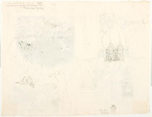 Lorenz Frølich made this architectural study using pencil on paper. In this sketch, we see Frølich's interest in the visual codes of architectural representation, and how they carry cultural and historical meanings. Made in Denmark, we might consider how this relates to the construction of national identity in the 19th century. The revival of Gothic architecture, seen here in Frølich's sketches of spires and arches, was often tied to notions of national heritage and religious revival. Classical motifs can also be discerned, such as the columns and entablatures in the bottom right. Frølich was trained at the Royal Danish Academy of Fine Arts, so we might consider this work in relation to academic traditions, especially within the historical context of the National Romantic style. Was Frølich self-consciously conservative or progressive in his approach to these architectural forms? Further archival research into Frølich’s influences and artistic training will allow for a more nuanced understanding of his architectural studies and how they reflect broader cultural and institutional trends.