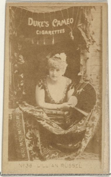 This lithograph, printed by W. Duke, Sons & Co., features actresses Campbell and Lane against a backdrop that’s rich with symbolic undertones. The ornate balustrade, decorated with classical figures in dynamic poses, reminds us of ancient friezes, evoking a sense of timeless drama and narrative. Notice the binoculars held by one of the actresses. This simple object speaks volumes. Binoculars collapse distance, turning faraway spectacles into intimate experiences. This motif echoes in Renaissance paintings where telescopes or maps appear, symbolizing mankind’s quest for knowledge and control over the world. The gaze, directed outward, transcends its immediate context. It pulls at our subconscious, inviting us to ponder not just what is seen, but how it is interpreted. Like Narcissus gazing at his reflection, the act of looking becomes a mirror, reflecting our own desires and projections. Such symbols weave through history, continuously reshaping themselves, yet forever tethered to our deepest cultural memories.