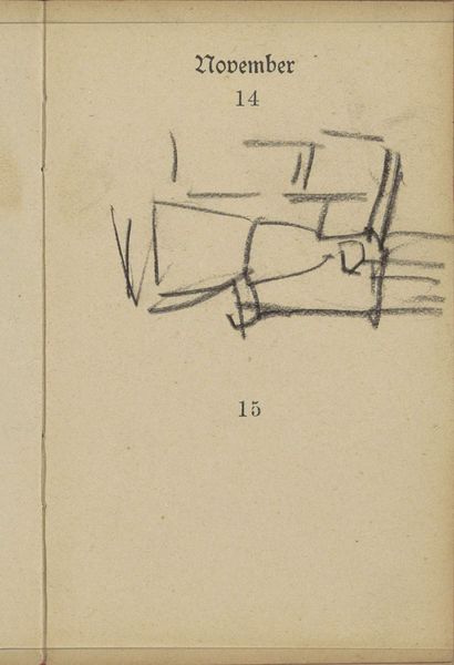Curator: This intriguing work, simply titled "Studies," comes to us from the sketchbook of Carel Adolph Lion Cachet, circa 1906. Editor: My first impression is one of stark simplicity. Just looking at the thin pencil lines on the toned paper, it feels like I’m intruding on the artist's private thoughts, a peek into their design process. Curator: Precisely. Cachet was deeply embedded in the artistic and political circles of the Dutch Arts and Crafts movement. He grappled with integrating aesthetic ideals with the needs of industry. The Rijksmuseum’s acquisition allows us to trace the intellectual trajectory from his formal studies toward these applications. Editor: Looking closer, you can really see how line dominates. It’s less about capturing a realistic representation and more about pure form and geometry, a dance of rudimentary shapes. What I find fascinating are the numbers sprinkled around each construction—are those notations intentional or accidental? Curator: The notations likely point to practical applications, design parameters, you might say. Cachet wasn't just making art for art’s sake. These “Studies” emerge as the genesis of design elements perhaps for larger commissions that speak to the larger debate happening about the nature of artistic work at the beginning of the 20th Century. Editor: Interesting. To my eye, the abstraction speaks of modernist ideals brewing at that time, focusing more on process. Do we see that process mirrored by artistic production within his contemporary art world? Curator: Indeed. Cachet was quite active in public debates surrounding craft, the decorative arts and their function in creating a new society. His involvement helps explain his deep conviction that even simple lines could hold the potential to reshape cultural landscapes and hierarchies. These sketches act like a bridge connecting Cachet to debates on functional design and mass production. Editor: And yet, there’s an inherent intimacy that's so striking! It’s this interesting contrast of a very accessible sketch versus the public discourse and grand societal ambitions Cachet embodied. Curator: I would agree! Looking at it in its display here within our museum helps highlight this connection: seeing such a direct artifact representing design ideology—rather than only objects manufactured through it—prompts further study and analysis from those within a museum setting. Editor: Ultimately, it reveals how a simple, private gesture can be interwoven with grand social visions. Curator: Precisely. These 'Studies' open the doors through which viewers gain access not only into the development of early abstract form, but how art interacts with historical movements beyond museums!