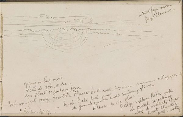 Editor: Here we have "Spits van de berg Podhorn in Marienbad," a pencil drawing on paper from 1869 by Johannes Tavenraat, currently residing in the Rijksmuseum. There’s something stark about this landscape, a certain…bareness conveyed by the limited tonal range of the pencil. What strikes you most about the composition and how would you begin to decode it? Curator: Precisely. Begin with a focus on the formal elements. The linear precision establishes spatial depth, though one must question how much of that space is created. Notice the contrast between the distinct geometric peak and the softer, blurred forms in the foreground. What does that division achieve formally, given the repetition of line and shape throughout? Editor: I suppose it draws the eye to that central peak, establishing a hierarchy. But I wonder, without dramatic tonal shifts, how does the artist sustain visual interest? Curator: Look closely at the varying density of line. The artist uses hatching and cross-hatching to create subtle variations in value, thus implying light and shadow, creating a visual experience that replicates atmospheric effects in the chosen landscape. Observe also the distribution of positive and negative space - how does that balance contribute to the image's overall sense of… visual stability? Is this balance something the artist is aware of achieving or is it more or less accidental? Editor: That careful hatching adds so much! The way it articulates the slopes, building the density where the light isn’t hitting directly… I see how it reinforces the form of the mountain, anchoring the entire drawing. I did miss that initially, thanks. Curator: The process of artful looking often has these rewards.