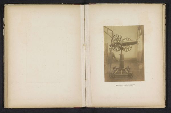 Curator: This gelatin silver print, attributed to George Gardner Rockwood, likely dates before 1871 and is titled “Raderen van een stoomlocomotief,” or “Wheels of a Steam Locomotive.” It presents a detailed, almost clinical, still life. Editor: My first thought? It’s surprisingly serene for a picture of locomotive parts. I mean, these are components of roaring, powerful machines. Here, they’re like elegant, minimalist sculptures. The light is just so soft. Curator: It's true, the photo breathes a quiet fascination with industrial progress. The careful arrangement suggests a pride in engineering, an almost reverential display. In the late 19th century, photography became vital in documenting this explosion of innovation, particularly for patent offices and technical publications. Editor: And there’s something else...these wheels, stripped of the engine, hint at fragility, don't they? Like they're components, replaceable pieces in a much bigger game. Almost symbolic of how individuals became part of an industrial machine, maybe? Curator: Interesting parallel! That reminds me of the societal impact this technological leap had. Railways dramatically changed landscapes, economies, and people’s lives. Rockwood might not have been directly commenting, but certainly contributing to that moment’s visual language. Editor: The contrast between the rough texture of the metal and the smooth surface of the paper gives this photo a palpable, sensory quality. It bridges the gap between the industrial age’s cold, hard facts, and, dare I say, its artistic potential. I get an odd sense of nostalgia too. Like these wheels long for movement, like cogs craving gears. Curator: Agreed. Consider also the deliberate focus and composition. This is more than mere documentation, this is carefully orchestrated presentation! You almost see it as pre-advertising maybe. It makes you ponder how quickly industry infiltrated artistic practices and transformed everyday visual culture. Editor: It truly makes you think... such a humble assembly of steel now carrying echoes of a long-lost past into our modern lives. This really illustrates perfectly, in an unpredicted serene fashion, just what makes trains still feel like travelling into another space and another time. Curator: Exactly! It prompts questions far beyond simple mechanics. I feel a reflection on the social consequences of this technological shift.