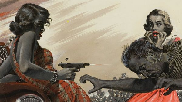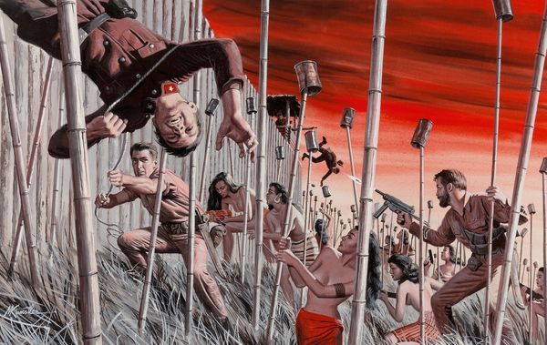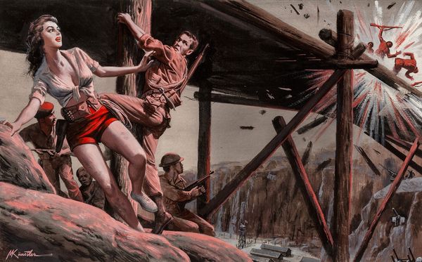 Mort Künstler made this painting called Hilter’s U-Boat Treasure, and well, that title says a lot! The monochromatic palette is a jumping-off point to imagine the murky, cold, underwater world. You can almost smell the salt. Look at the muscular divers rendered in meticulous detail. Every ripple of their bodies contrasts with the grainy texture of the wreck. The artist’s hand is apparent in the tonal variations, applied so smoothly you can barely see the brushstrokes. It’s a process concealing process! The painting is so clean it's hyper-real, but also… kind of fake? It reminds me of those heroic paintings that Norman Rockwell made, but with an erotic charge – maybe like Eric Stanton but underwater! This piece leaves us adrift in the ambiguities between history and fantasy, daring and desire.