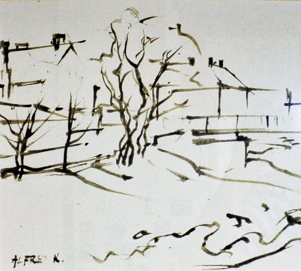 Hryhorii Havrylenko made this landscape drawing, possibly of Stebliv, with ink on paper. Look at the confidence of the line. It's kind of amazing how a few marks can conjure a whole world. The wiry lines in the foreground scribble together to make bushes, a chaotic but lively mark-making. Then there's the cool restraint of the clouds, just floating up there, detached. It’s a study in contrasts, and that contrast is what gives it life. This piece reminds me of Guston’s late ink drawings, both show a similar sensibility. But unlike Guston, Havrylenko’s drawing feels less like a departure and more like a returning to something essential. It's like he's saying, "Here's what I see, here's what I feel, take it or leave it." And honestly, I’m taking it. This is the kind of art that stays with you.