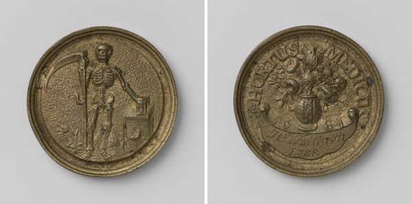 This undated medal commemorates the Surgeons' or Cosmas and Damian Guild of Middelburg. The medal's imagery creates meaning through visual codes, cultural references, and historical associations of the Dutch Republic. The skeleton holding an hourglass could reference the omnipresence of death and the limits of the surgeons' abilities. Guilds like this one shaped artistic production and reception by commissioning works, enforcing standards, and providing patronage to their members. The coat of arms could also hold clues to the historical and social context. Historians use guild records, civic documents, and period publications to understand how art reflected and influenced the social structures of its time. The Surgeons' Guild medal is a reminder that art’s meaning is always contingent on the specific social and institutional contexts in which it was produced and viewed.