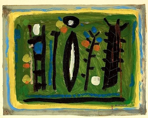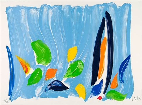 This brightly colored image, Flores e Frutas, by Aldemir Martins, is a feast for the eyes. I love the way he's using color to define form, like building blocks for the flowers and fruit. The colors really pop, don't they? Martins isn’t trying to trick us into thinking these are real flowers and fruit; it’s about pure, unadulterated joy. Look at the surface, it is full of texture, like the image has been printed over and over. It feels like an open invitation to play with our perceptions of color and shape. And, those blacks really ground the composition. It's almost a dare - can you make sense of this chaos? Can you find the beauty in the off-kilter perspective? I am reminded of Matisse, but Martins has his own fresh take. It's like he's saying, "Here's a world of color and shape; come, explore it with me!"