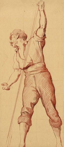 Curator: What strikes me first is the intense, almost frenetic energy conveyed through what seems to be a simple pencil drawing. Editor: Indeed. Here we have Vincent van Gogh's "Standing Man Seen from the Back," dating from 1886. The piece is currently held at the Van Gogh Museum in Amsterdam. He uses only pencil on paper, but manages to capture so much…what’s the first thing you see? Curator: Definitely the textural richness of the shading. The artist is incredibly skilled in building tone with simple tools. And he pays meticulous attention to clothing. You notice the roughspun fabric, the way it hangs. Van Gogh clearly considered not just the figure, but how the means of labor impacted this person's posture, the slump of his shoulders, the tension in his neck. The worn soles of his shoes! You get such a powerful sense of manual labor represented here, the everyday worker, but immortalized in art. Editor: Absolutely. And considering this was drawn in 1886, we have to think about the political and social implications of such imagery. Van Gogh often focused on working-class figures, elevating them in a way that challenged the established norms of the art world, which typically celebrated aristocracy or religious iconography. These drawings allowed broader audiences, potentially including those same workers, to engage with art and see themselves represented within its visual language. What sort of cultural institutions gave his work that sort of influence? Curator: His commitment to representing the world around him through those he found important resonates so loudly! Van Gogh's early efforts at exhibiting his work, of course, are filled with rejection. It was the efforts of those involved with distributing cheap artworks, or using popular art journals that his themes caught on. He wasn't simply observing the working man; he was actively engaging with the idea of elevating manual labor in the public consciousness through the very art forms and mediums used to celebrate traditional, exclusionary definitions of 'art'. Editor: It's truly a work of quiet intensity, made potent through simple materiality. Curator: A demonstration of what Van Gogh found noble in ordinary human experience. Editor: And of what visual imagery reveals about social agency in representing dignity.