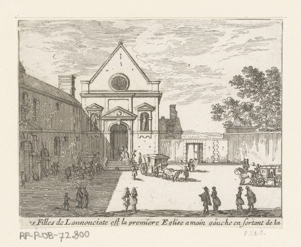 Editor: So, here we have Jacobus Baptist's "Piazza della Minerva in Rome" from 1729, a delicate Baroque print at the Rijksmuseum. I am struck by the stillness of the scene, yet it feels like a stage ready for a drama to unfold. What grabs your attention when you look at this image? Curator: The enduring symbols of power and knowledge layered within this scene, primarily. Observe the obelisk at the square's heart, a repurposed Egyptian monument now capped with a Christian symbol, standing before the Dominican church of Santa Maria sopra Minerva. The layering speaks volumes. Editor: Layering how? Is it just a visual thing, or is there something deeper? Curator: Deeper, certainly. The obelisk's original Egyptian significance as a solar symbol, its appropriation by the Romans, and subsequent re-dedication to Christian virtue all contribute to the evolving narrative of Rome itself. And consider the church: its very name, "above Minerva", indicates how Christian belief supplanted the classical. Baptist’s inclusion of the Pantheon nearby, also once dedicated to pagan gods but now Christianized, deepens this cultural palimpsest. Editor: So, these symbols weren’t simply chosen randomly; they tell a deliberate story. Curator: Precisely! The piazza itself becomes a stage for the ongoing performance of cultural memory, where past beliefs are never truly erased, but rather incorporated into the present. Note, too, the small human figures. Are they dwarfed by these monumental structures, or are they actively shaping and reshaping the piazza's meaning through their everyday activities? Editor: That gives me a lot to think about. It's not just a pretty cityscape but a conversation between civilizations across time. Curator: Exactly. Baptist's print invites us to contemplate the weight of history and the symbols that silently yet powerfully shape our understanding of place.