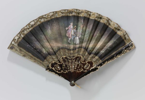 This fan was made by an anonymous maker with painted silk and mother-of-pearl, sometime in the past. Consider all the labor folded into this object! Silk cultivation, the pearlescent shell of the handle, and the gold decoration all speak to global trade networks, and the exploitation of human and natural resources. The fan is painted with scenes related to wine growing, a process which involves not only agricultural labor, but also, of course, leisure and social life. The hand-painted vignettes probably reference popular imagery, and the pearl and gold details add an exclamation point of luxury. But ultimately, this object performs a simple function: providing a cooling breeze. The shape of a fan is all about efficiently moving air with a flick of the wrist. Note also the folding mechanism which allows it to collapse down, so that it can be conveniently carried. So here we have it all in one object: art, craft, design, labor, leisure, and social distinction. Each of these qualities relies on the others to make this fan such a compelling object.