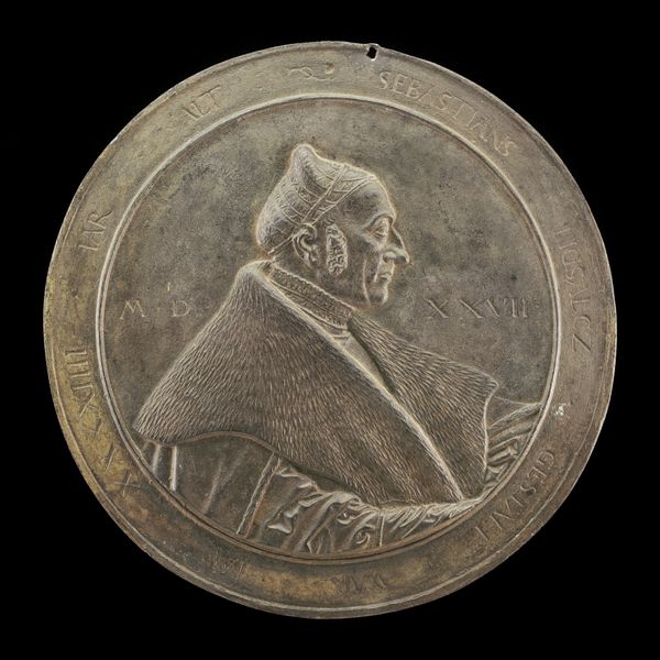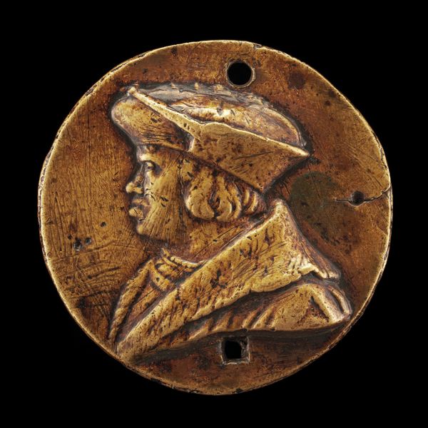 Editor: Here we have a bronze portrait medal, it represents Kunz von der Rosen, who died in 1519, and was a confidential counselor of Maximilian I of Austria. I am fascinated by how solid and imposing the man looks despite the small scale of the medal. What can you tell me about this portrait, its context? Curator: This medal offers a glimpse into the social function of art during the Renaissance. Portrait medals like this one weren't just decorative; they were tools for constructing and disseminating an individual's image. Who was Kunz von der Rosen, and why would someone commission a medal like this? Editor: He was a counselor, an important advisor, wasn't he? It's interesting to think about how the medal itself might have served a political purpose. It looks very classical; the circular shape, the man in profile… Was that intentional? Curator: Precisely. The circular form and the profile view deliberately hark back to ancient Roman coinage, associating the sitter with power, authority, and the classical virtues. Notice the crisp detail, and the way light would have played across the surface. This wasn't just about likeness, it was about projecting an ideal of leadership, right? Editor: Yes, absolutely. It also seems like a statement about his position in society – it says that he should be remembered in history! Curator: The inscription, any accompanying text – it all plays into the message. It’s worth considering who would have owned and displayed this medal, and where. Was it a personal memento, or a more public declaration? Medals could be exchanged as diplomatic gifts, or displayed within a personal study, shaping perception and solidifying social bonds. The political function of art shouldn’t be underestimated. Editor: That's so fascinating! It’s really interesting to consider all of the implications that one small artwork may have. Curator: Absolutely, I learned too much from that, and your perspective really opened my mind as well!