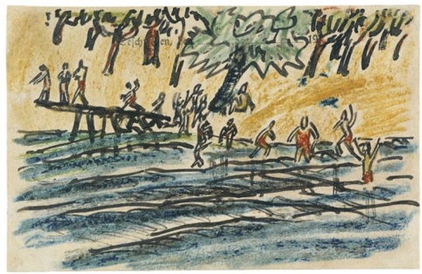 Curator: Oh, there’s a flurry of ink on the page—a tangled embrace of strokes depicting a scene that appears to buzz with frenetic energy! Editor: Indeed. This is "Old Vineyard with Peasant Woman," a work produced by Vincent van Gogh in 1890. You can find this piece at the Van Gogh Museum in Amsterdam. Van Gogh crafted it using ink, pencil, and with the expressive application of impasto, reflecting his distinctive Post-Impressionist style. But let's get into this buzzing feeling; tell me more about that. Curator: Well, look at the linework—it practically vibrates. The rapid strokes conjure an almost claustrophobic vision, despite depicting an outdoor scene, creating a world of restless anxiety. The vineyard seems trapped. And consider the single female figure—diminutive, nearly consumed by the surrounding, overgrown landscape. Is this perhaps a commentary on the subjugation of women to an endless cycle of agricultural labor and societal expectations? Editor: That's a potent interpretation, viewing the composition as a symbol of constrained womanhood. I am instead struck by how he transforms ordinary objects, giving everything the same vibrating textural intensity. The roofs of the buildings become visually as dynamic and essential as the figure of the woman or the vine itself. Semiotically speaking, everything takes on a renewed level of visual energy. Curator: Yes, and if you read into his life, there is that potential narrative about mental health in agrarian contexts during the late 19th century—his voluntary confinement would make one see this image as less about celebrating nature and more as the oppressive grip of rural existence, further isolating vulnerable individuals. It certainly seems his experiences in such asylums shaped a bleak reading. Editor: I would argue it is more an attempt at translating what he was actually seeing into tangible form, an example of a type of subjective visual realism that gets expressed as abstraction of what others were literally viewing with the eye, but without as much passion. He's certainly forcing a novel reading that continues to challenge how we think about perception. Curator: I still see it through the lens of societal narratives—the peasant woman as a stand-in for a forgotten class. Editor: Either way, the interplay of visual forms creates an intriguing, albeit agitated composition. Curator: It urges us to look at art and life from a different perspective.