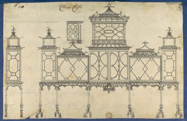 This is "Hanging Shelves" from Chippendale Drawings, Vol. II, created by Thomas Chippendale, sometime in the 18th century, using ink on paper. The drawing presents a series of elevations, each meticulously detailed, which showcase Chippendale's formal approach to furniture design. The shelves are illustrated with precise lines and geometric forms. Notice the symmetry and balance in the composition, reflecting the classical ideals of the period. The shelves are not merely functional objects but also exercises in visual harmony. The composition also engages with the decorative motifs of the time. The lines of the shelf designs are interrupted by more free flowing foliage, a synthesis of practicality and ornamentation. This drawing serves as both a design and a visual statement. Chippendale offers a complex interplay between form and decoration which is rooted in philosophical concerns of utility and beauty.