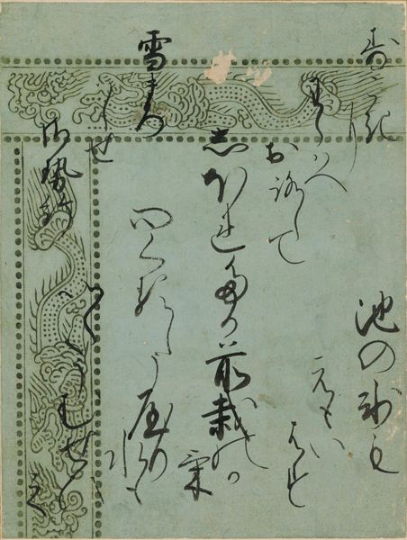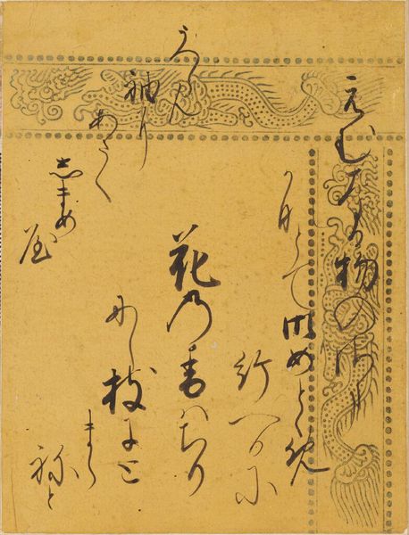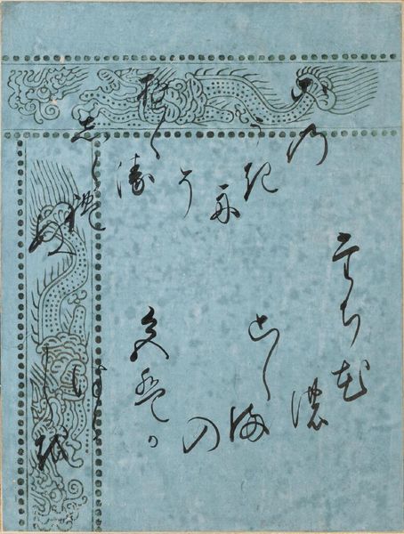 Editor: This is the fifth volume of *Fifty NÅ Plays, Illustrated* by Tosa Mitsuoki. The light blue and gold feels so delicate and ephemeral, like a faded dream. What do you see in this piece? Curator: I see a whisper of old stories. Imagine the artist, brush in hand, channeling centuries of NÅ theatre tradition. It's more than just illustration; it's a portal, isn’t it? Editor: A portal? That makes sense! The faded colors and almost ghostly fish do have that feeling. Curator: Exactly! It's as if the artist is inviting us to step through the page and into the heart of Japanese folklore. It's beautiful. Editor: Absolutely! I hadn't thought about it like that before. Thanks for sharing your perspective. Curator: My pleasure. Art is always a conversation, wouldn't you agree?