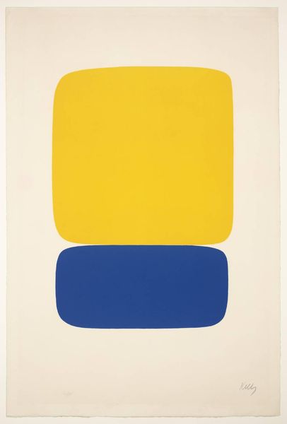 Paul Feeley’s ‘Rouso’ is a study in balance, achieved through simple shapes and a bold palette. The juicy color, sunny yellow next to a robust red, feels very mid-century modern, maybe applied as screenprint or uniformly rolled out paint. The composition is split, not quite evenly, by a curvy blue line that feels like a deliberate act of imperfection. It's a reminder that art isn’t about flawless execution but about the energy and movement of the hand. Looking closely, the yellow and red aren’t perfectly flat; there's a slight texture, a whisper of the material's history. That blue line, though, is key, preventing the composition from being static, adding a playful, almost bodily feel to the whole piece. Feeley's work has a kinship with artists like Ellsworth Kelly, who also played with color and form but also evokes a dialogue between the controlled and the chaotic, the perfect and the imperfect. It’s in this tension that the real juice of art lives.