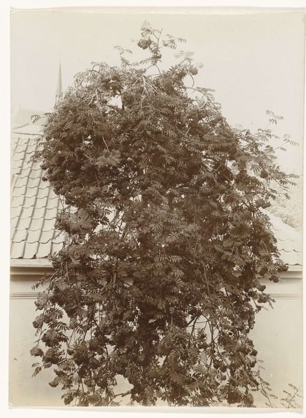 Editor: So, this is “Klimplant tegen de muur van een huis,” or “Climbing Plant Against a House Wall.” It’s a photograph, probably taken sometime between 1907 and 1930. There's something really striking about the textures, the way the organic plant life kind of battles with the brick wall. What grabs you when you look at it? Curator: Well, first off, it whispers secrets of forgotten summer afternoons. You know, those days when the light is just so, and time decides to take a little nap? The plant itself becomes a living tapestry against the stern geometry of the bricks. It’s as though nature is staging a gentle rebellion against order, a theme so familiar in art, wouldn’t you agree? What feelings does that provoke in you, a push and pull? Editor: Definitely a sense of push and pull! The organized wall versus this explosion of organic texture. And the way the shadows play, it’s almost like the wall is breathing. Was the photographer trying to make a statement about nature reclaiming space? Curator: Perhaps. Or maybe they were simply captivated by the beauty of everyday life, that poignant contrast between the man-made and the wild. The colours are really telling; subdued and a bit melancholy, no? It’s a reminder that beauty is often found in the quiet corners, in the little details that others might overlook. You might say it offers a perspective that favors what flourishes, irrespective of expectations. Is there anything rebellious about nurturing those little sparks of hope and change, instead of rigidly directing growth? Editor: I never thought of it as being…rebellious exactly. Just a kind of lovely, inevitable… softening? Curator: Yes! Softening is precisely the word. An untamed spirit of sorts. And after all, isn't the most lasting art capable of softening us, opening our eyes and, dare I say, our hearts? Editor: Definitely makes you think about what we consider 'art' to be, right? I really appreciate that viewpoint. Thank you.