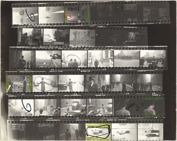 This photographic contact sheet, "Gandy Brodie and John Grillo - Painters," was captured by Robert Frank, though the date remains unknown. Frank’s work, especially his use of high contrast, speaks to the raw, unfiltered process of observation and selection. This isn't about a single, perfect shot; it's about the rhythm and chaos of seeing. I am drawn to the way Frank captures these artists amidst their lives, not posed, but caught in moments of contemplation or creation. The grain and contrast highlight the tangible nature of the photographic process itself. It's almost like looking at a painter's palette, where each color and stroke carries the weight of intention and chance. The darkroom manipulations remind me of the physical act of painting - layering, obscuring, and revealing. Thinking about other artists who capture a similar grittiness, Nan Goldin comes to mind. Both explore themes of intimacy, vulnerability, and the beauty found in the everyday. Art's an ongoing conversation, isn't it? And the beauty of it is, there's no one "right" way to see.