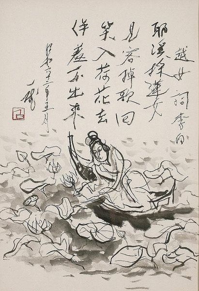 This print of Suwu de herder was created by Kawanabe Kyōsai, a Japanese artist working in the late 19th century during the tumultuous Meiji Restoration. Kyōsai’s work, reflective of the societal shifts from feudalism to modernity, often critiqued political figures and explored themes of identity amidst change. Here, Kyōsai depicts Su Wu, a Han dynasty envoy, in a moment of solitary reflection. Su Wu was detained for nineteen years by the Xiongnu, nomadic people from beyond the northern border of China. He was forced to herd sheep and deprived of proper sustenance, maintaining his loyalty to the Han emperor despite extreme adversity. The print captures an emotional resilience, showing a bearded figure surrounded by symbolic elements, suggesting both his hardship and unwavering spirit. Kyōsai’s ability to blend traditional artistic elements with commentary on the socio-political environment reflects his unique position. The work ultimately invites reflection on themes of loyalty, cultural identity, and the personal costs of political conviction.