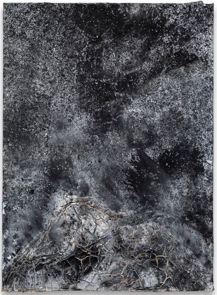 Curator: Here we have Cy Twombly's "Myo," an oil painting dating from 1951. Editor: Immediately, I'm struck by the contrast – a stark monochromatic palette of deep blacks and earthy whites. The brushstrokes seem almost violent, conveying a palpable sense of inner turmoil. Curator: This work comes from a crucial period in Twombly's early career. Emerging from the shadow of World War II, Abstract Expressionism served as a vital means for artists to grapple with themes of existential angst and the perceived breakdown of societal norms. We can certainly see the echoes of that here, but it's essential to recognize how Twombly departs from the predominantly male-dominated narrative. Editor: Absolutely. Those looping lines and rudimentary forms remind me of cave paintings or ancient scripts. Are those symbolic figures fighting each other, or perhaps the inner architecture of his memories, brought up by a culture in shock? There is something extremely basic to our experience of human symbolic record-keeping reflected here. Curator: Indeed, these motifs recur frequently in Twombly's oeuvre, hinting at a personal mythology taking shape, intertwined with trauma. Consider his subsequent turn towards calligraphic abstraction—these gestures may be the origin. We might also place this painting within its contemporary landscape, a generation emerging from war but facing new political divides as McCarthyism gains strength in America. Editor: Right. While the mark-making is abstract, the underlying feeling evokes societal upheaval. If one stares at it long enough, something unsettling emerges. I can easily imagine it hanging alongside de Kooning or Kline in their most frenzied, existential moments. I wonder, though, if this painting wasn’t meant to reveal a deeper human truth of destruction in service to power rather than pure aesthetics. Curator: Ultimately, it seems Twombly is prompting us to reconsider not only the legacies of abstraction, but also the social and cultural conditions which make a particular abstract expression possible. Editor: It seems "Myo" acts like a key, unlocking Twombly’s entire vocabulary while pointing towards art as our deepest kind of recollection. Thank you for illuminating this painting’s cultural context.