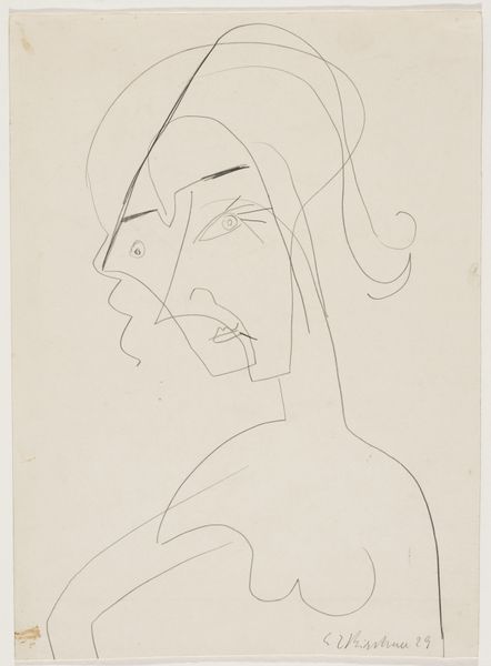 Editor: This is "Gezicht van een vrouw," or "Face of a Woman," by Leo Gestel, dating from 1891 to 1941. It’s a drawing, pencil and ink on paper, and it has a strikingly modern feel for something created so long ago. What strikes you when you look at it? Curator: It's intriguing how this drawing invites us to consider the shifting sands of artistic representation within its historical moment. Gestel straddled the line between traditional portraiture and modernist experimentation. Notice how the almost cartoonish simplicity could be seen as a critique of academic portraiture. Do you see any hints of social commentary embedded in the starkness of the lines? Editor: Social commentary? I hadn't really thought about that. It seemed more like a personal style choice, the quick strokes capturing an essence rather than a precise likeness. Curator: And that is indeed part of Gestel's artistic project, I would argue. But how do you think this move away from detailed realism might relate to broader social changes happening at the time? For example, consider the rise of photography. Did that influence portraiture as an artform? Editor: That makes sense. Maybe artists felt freed to explore different forms of expression since photography could capture realistic likeness. So, by moving away from that, he's participating in a larger cultural conversation about what art *should* be? Curator: Precisely. He’s also engaging in the political act of re-defining the art space and challenging societal expectations about who is represented in art. Think about who had access to portraiture previously – and who is excluded here. What is the effect? Editor: I hadn't thought of it that way before. It makes the work seem much more… deliberate. It's not just a face, but a statement. Thank you for making me aware of all that context! Curator: And thank you for reminding me of the simple power of line and form. Looking at it through your eyes makes me appreciate the freshness of Gestel's approach, even after all this time.