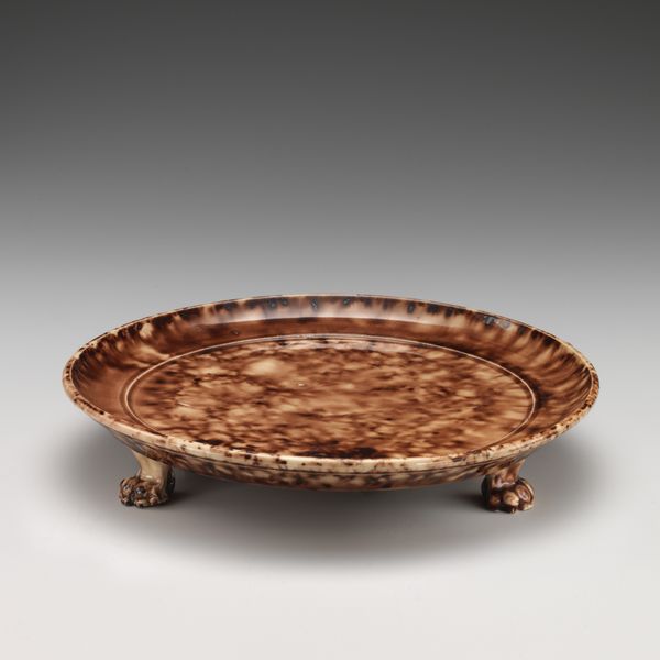 This small ceramic tazza, a Whieldon type, presents a puzzle of earthy tones and mottled surfaces. Green and brown glazes meld, evocative of nature, of landscapes, and perhaps, alchemical experiments. The tazza form itself, a shallow cup on a pedestal, echoes ancient libation vessels. Recall the Minoan examples, used for pouring offerings to the gods. In a way this mottled pattern invites us to consider the patterns of nature; the idea of ‘mottling’, appears in Ancient Rome, where mottled marbles were highly valued for their natural patterns. Such forms and their decoration become imbued with layers of cultural memory, and the human desire to control and understand the natural world. The human mind finds patterns, just as it seeks order in chaos. Perhaps this piece hints at the way humans interact with, and perceive, nature; blurring the boundaries between the objective and the subjective. The spirit of nature, captured and contained.