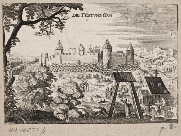 Editor: This engraving, "Gezicht op het Karmelietenklooster, te München" by Michael Wening, made in 1701, presents an aerial perspective of a Carmelite monastery. It looks so serene and orderly. What visual cues are most significant to you? Curator: The organization of space immediately stands out. The monastery is neatly divided, with the church, gardens, and living quarters clearly delineated. Consider the religious context. Gardens in monasteries weren't just decorative; they were often symbolic of paradise, a secluded space for contemplation, shielded from the temporal world. Do you think the artist uses this division as more than just a description of space? Editor: It could represent a specific order to the life of the monks within the monastery? Each section representing a part of the lifestyle. Curator: Exactly. Think of the building’s orientation and imposing facade as not just stone and mortar, but a statement of the Church's presence. The Carmelite order, known for its focus on contemplative prayer, also influences how they interact with and inhabit a physical space. What about the crest, at the upper-left corner? What does that tell you about authority, memory and tradition? Editor: I guess that identifies who commissioned or had power over the monastery? That symbols of authority reinforce not just physical presence but also ideological control. It's like a map but also an assertion of power! I didn't see that before. Curator: And notice how this depiction mirrors broader Baroque artistic conventions? Everything from the landscaping to the very detailed architecture emphasizes structure and control. Wening provides not just an image, but also a meditation on established religious and societal norms. Editor: This has given me a new perspective, seeing how much the engraving communicates beyond its architectural subject! Curator: It's fascinating to consider how an image carries the weight of its time, telling tales about authority, faith, and the careful control of both landscape and belief.