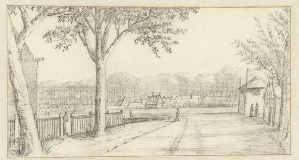 Editor: This drawing, "Landscape; verso: Figure Studies including a Mounted Amazon," by John Singer Sargent captures a park scene. The stark contrast between light and shadow creates an almost theatrical mood. What do you see in this piece? Curator: The drawing offers a glimpse into the leisure and privilege enjoyed by certain segments of society during Sargent’s time. The manicured landscape serves as a backdrop, reflecting the power structures inherent in land ownership and social class. How does the presence of the classical structure further inform your reading? Editor: I guess it reinforces the idea of wealth and historical legacy, something enduring. Curator: Precisely. Sargent’s choice to depict this scene raises questions about who has access to such spaces and whose stories are being told. It invites us to consider the silences and erasures within this seemingly idyllic landscape. Editor: I hadn't thought of it that way. Thanks! Curator: My pleasure. Every landscape is a stage, and Sargent shows us one where the scenery holds more power than we realize.